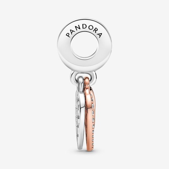 This Entwined Hearts Double Dangle Charm is the perfect piece to give your bracelet a loving touch. Engraved with the words "I Love You Unconditionally", this Pandora Moments charm is hand-finished in sterling silver and 14k Roseold plating set with clear cubic zirconia, with two hearts that come together to represent eternal love.