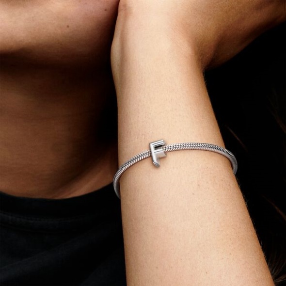 Tell your style story through our letter charms that let you spell out the words that mean the most to you. Monogram your Pandora Moments charm bracelet with important initials or create a personal message with the letter F. The reversible sterling silver charm is polished on the front and feature raised hearts and beads on the back. Add the letter F to your charm collection or gift it to someone that's got a special connection to the letter.
