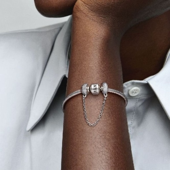 From the collection called PANDORA Moments. Genuine PANDORA Charm. A safety chain for securing Charms^Bracelets. Hand-crafted using 925 sterling silver. Features sparkling cubic zirconia pave. Chain length is 5cm. It is very common for people to gather the trinkets that celebrate their memories and commemorate their milestones so it's important to make sure that they stay safe and secure on your charm bracelet, and you can do that with this sterling silver PANDORA safety chain, which measures 5cm in length. Set off by a pave of sparkling cubic zirconia, it has a dazzling finish that's eye-catching as a gift and comes with a swivel chain so it doesn't tangle up while you wear it. Orders placed are dispatched to UK residents within 24 working-day hours between Monday to Friday excluding Bank; Public Holidays*.*This excludes engraving requests which take an additional 5 working days.**This excludes Wedding Rings which take 14 working days as they are handmade in the UK to order.Standard (Unsigned): 3.00 (free on orders;50+) - We aim for 5 working days.Express (Signed For): 4.00 (free on orders;100+) - We aim for 3 working days.Special: 7.00 (free on orders;150+) - To arrive the next working weekday.Saturday Special: 11.50 - To arrive on a Saturday.Extra Special - No charge. Applied to non-tungsten handmade wedding rings only.Engraved items are non-returnable unless faulty.Earrings are non-returnable unless faulty due to hygiene reasons.Want to know more: Read our Delivery; Returns Policy. Be the first to review Sparkling Pave Safety Chain Charm, 5cm.