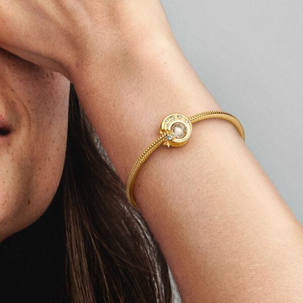 Celebrate Chinese Valentine's Day with the Sparkling Shooting Star Charm, inspired by a tale of celestial romance. Hand-finished with 14k gold plating, it features a crescent-shaped shooting star converging on a sparkling stone, a design that symbolizes the descent of the Sky Emperor's daughter Zhinᄄᄍ to meet her earthly lover, Niulang. Gift this special charm to your partner and make her feel like the star in your life.