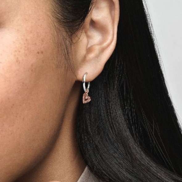 From the collection called PANDORA Moments. Genuine PANDORA Earrings. These are PANDORA Hoop Earrings. Hand-crafted using silver with a 14kt rose gold metal blend. Wear the sparkly Freehand Heart Hoop Earrings from PANDORA to enhance your earring style and make it a little more romantic. These earrings are made up of a tiny freehand heart framed by a row of clear cubic zirconia stones, a symbol of perfect imperfect love. Sterling silver hoops and 14kt rose gold-plated hearts decorate these special earrings, providing eye-catching and heart-warming appeal in equal measure. Orders placed are dispatched to UK residents within 24 working-day hours between Monday to Friday excluding Bank; Public Holidays*.*This excludes engraving requests which take an additional 5 working days.**This excludes Wedding Rings which take 14 working days as they are handmade in the UK to order.Standard (Unsigned): 3.00 (free on orders;50+) - We aim for 5 working days.Express (Signed For): 4.00 (free on orders;100+) - We aim for 3 working days.Special: 7.00 (free on orders;150+) - To arrive the next working weekday.Saturday Special: 11.50 - To arrive on a Saturday.Extra Special - No charge. Applied to non-tungsten handmade wedding rings only.Engraved items are non-returnable unless faulty.Earrings are non-returnable unless faulty due to hygiene reasons.Want to know more: Read our Delivery; Returns Policy. Be the first to review Sparkling Freehand Heart Hoop Earrings.