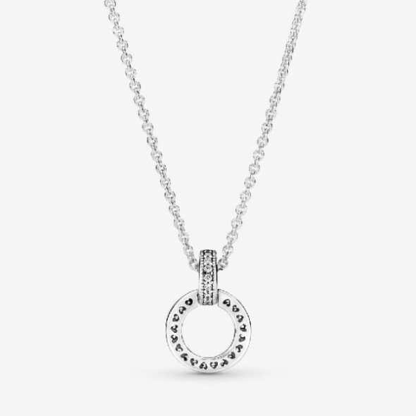 From the collection called PANDORA Signature. Genuine PANDORA Necklace & Pendants. This item is both the chain necklace and pendant. Hand-crafted using 925 sterling silver. Showcases sparkling cubic zirconia. Chain length is 50cm. With the panache of the PANDORA Double Circle Pendant & Necklace, which measures 45cm in length, the sterling silver piece is hand-finished and it is designed with two circles that have been merged to create a sparkling pendant. A row of cubic zirconia Pav encompasses the outer edge of the top circle, as does their iconic logo on one side of the circle. There are two circles in this set, the top circle swinging back and forth and the bottom circle featuring clear zirconia pave on one side and a cut-out heart on the other. Make your look a little bit different by wearing this PANDORA necklace. Orders placed are dispatched to UK residents within 24 working-day hours between Monday to Friday excluding Bank; Public Holidays*.*This excludes engraving requests which take an additional 5 working days.**This excludes Wedding Rings which take 14 working days as they are handmade in the UK to order.Standard (Unsigned): 3.00 (free on orders;50+) - We aim for 5 working days.Express (Signed For): 4.00 (free on orders;100+) - We aim for 3 working days.Special: 7.00 (free on orders;150+) - To arrive the next working weekday.Saturday Special: 11.50 - To arrive on a Saturday.Extra Special - No charge. Applied to non-tungsten handmade wedding rings only.Engraved items are non-returnable unless faulty.Earrings are non-returnable unless faulty due to hygiene reasons.Want to know more: Read our Delivery; Returns Policy. Be the first to review Double Circle CZ Pendant Necklace, 45cm.