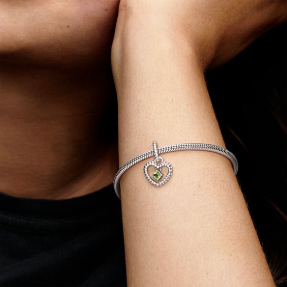 August Spring Green Beaded Heart Dangle Charm Pandora CA